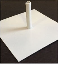 Base in metallo verniciato bianco, misura 15x15 cm, solida e stabile anche per composizioni più complesse