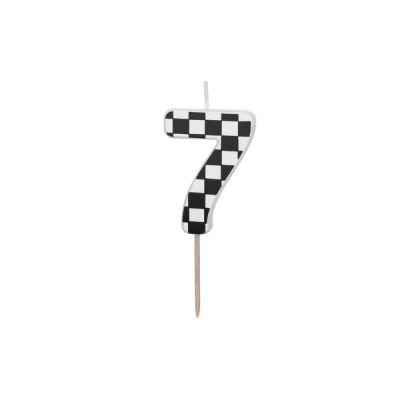 Candela compleanno numero 7 motivo bandiera a scacchi - 5.5 cm